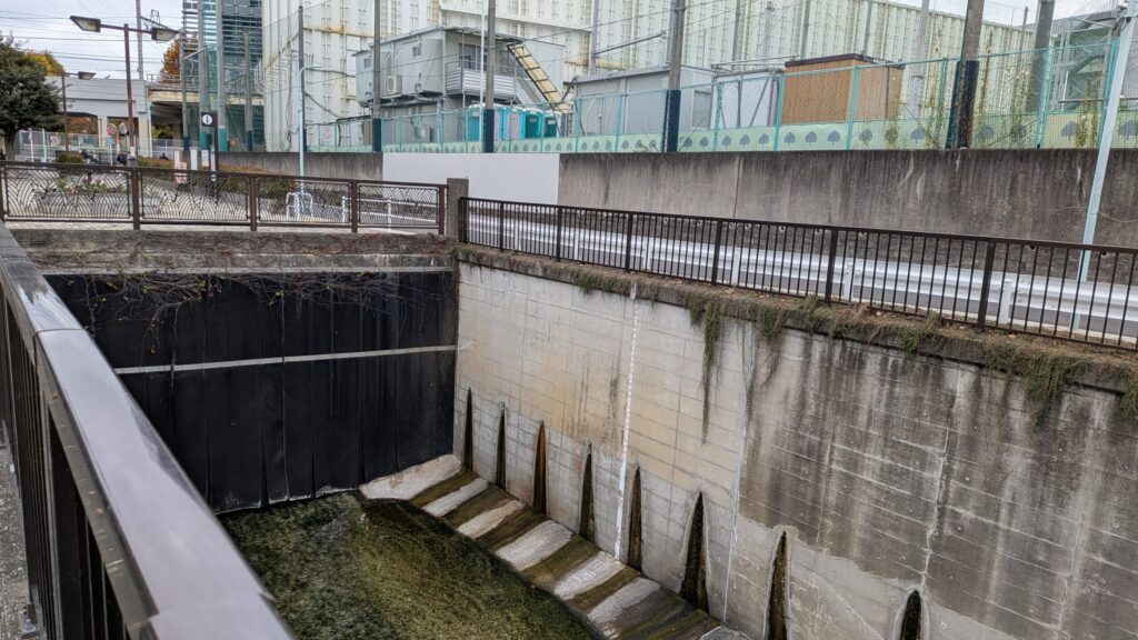 呑川は東京科学大学(旧東京工業大学)大岡山キャンパスの脇で開渠になります。