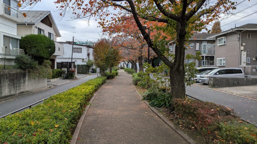 呑川の暗渠部分の始点は住宅街のなかで唐突に現れます。この辺りから水がわいていたのでしょうか。ランニングをする限りはその起こりがわかりませんでした。