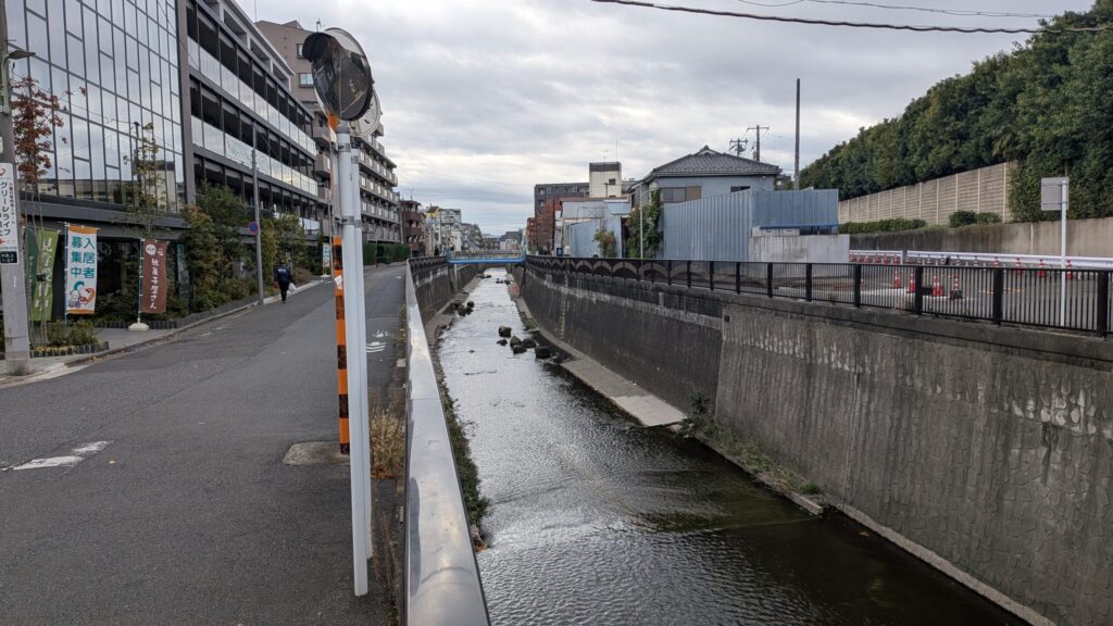 始点から東急線大岡山駅近辺で開渠になるまではこちらの画像のような光景が続きます。沿道は都市計画の高さ制限により高層のビルは皆無で見渡しもよく、沿道の様々な景色がランニングでの足の運びを後押しします。